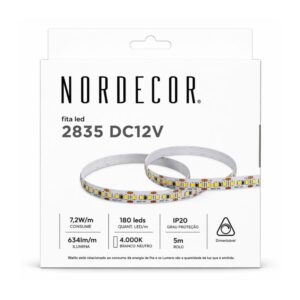 • Fita LED 2835 5m 12v 7,2w 4000k 180led/m 10mm IP20-Nordecor – 7118