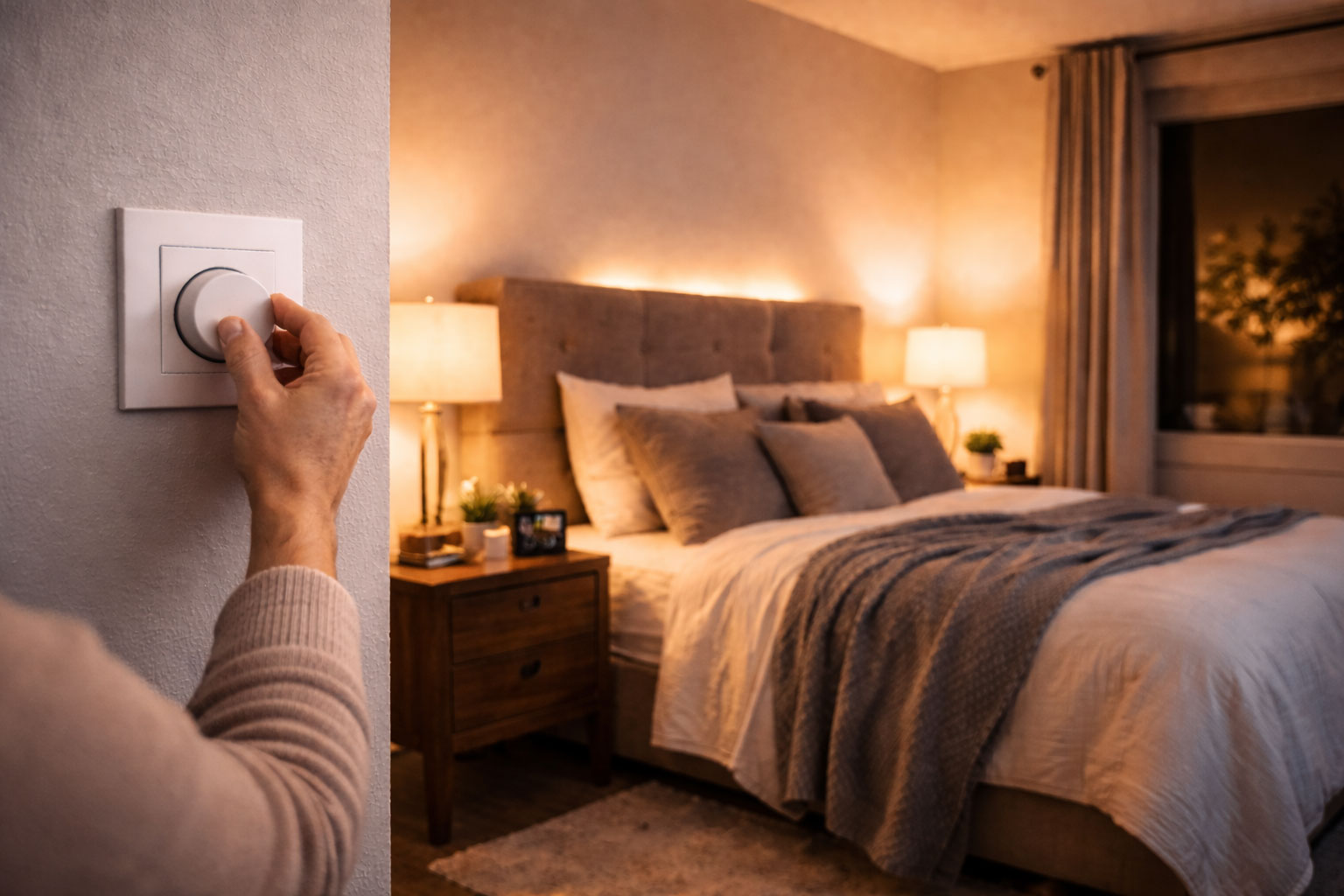 Esse controle acontece por meio de um dispositivo chamado dimmer, que regula a quantidade de energia elétrica enviada para a lâmpada. Ao reduzir essa energia, a lâmpada emite menos luz. Ao aumentar, a luminosidade volta ao nível máximo.
