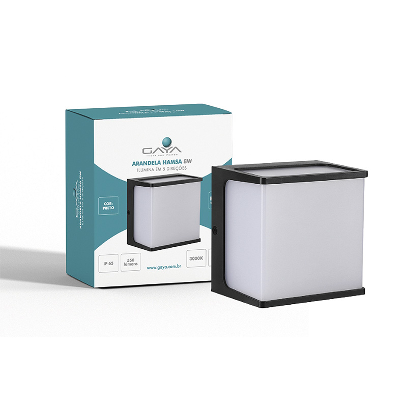 – Contém na embalagem: 1 Arandela Hamsa 8W 3000K 550lm IP65 Preta Gaya