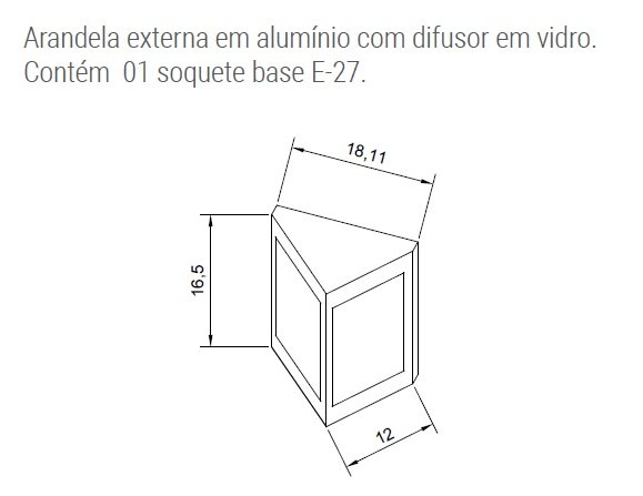 – Arandela externa em alumínio com difusor em vidro