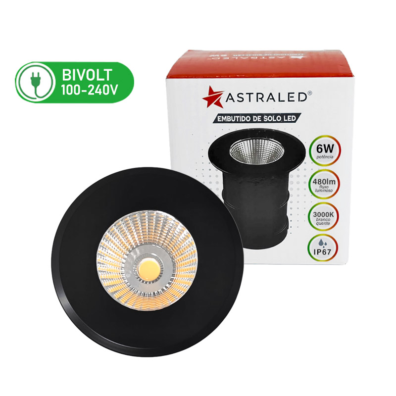 O Balizador de Solo 6W da Astraled é ideal para quem deseja destacar paisagens e áreas externas com potência e sofisticação. Com luz quente de 3000K e 480 lúmens, oferece iluminação intensa e acolhedora, perfeita para caminhos, jardins, fachadas e muros. Seu acabamento preto confere um visual discreto e moderno, integrando-se com elegância ao solo. A proteção IP67 garante resistência total à água e poeira, mesmo em ambientes expostos e sujeitos às intempéries. Durável, econômico e de fácil instalação, valoriza seu projeto com funcionalidade e estilo. Viva sua casa, compre agora e garanta o melhor balizador para seu ambiente!