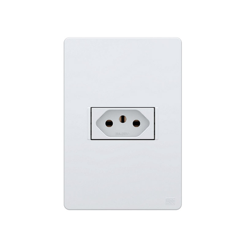 A tomada de 10A no padrão brasileiro 2P+T é indicada para o uso com diversos aparelhos elétricos do dia a dia, garantindo conexão segura e eficiente. O conjunto acompanha placa e suporte, proporcionando uma instalação completa, com encaixe preciso e acabamento profissional na parede. Fabricado com materiais de alta qualidade e com a confiabilidade da WEG, oferece excelente durabilidade, resistência ao uso diário e instalação prática em caixas padrão.