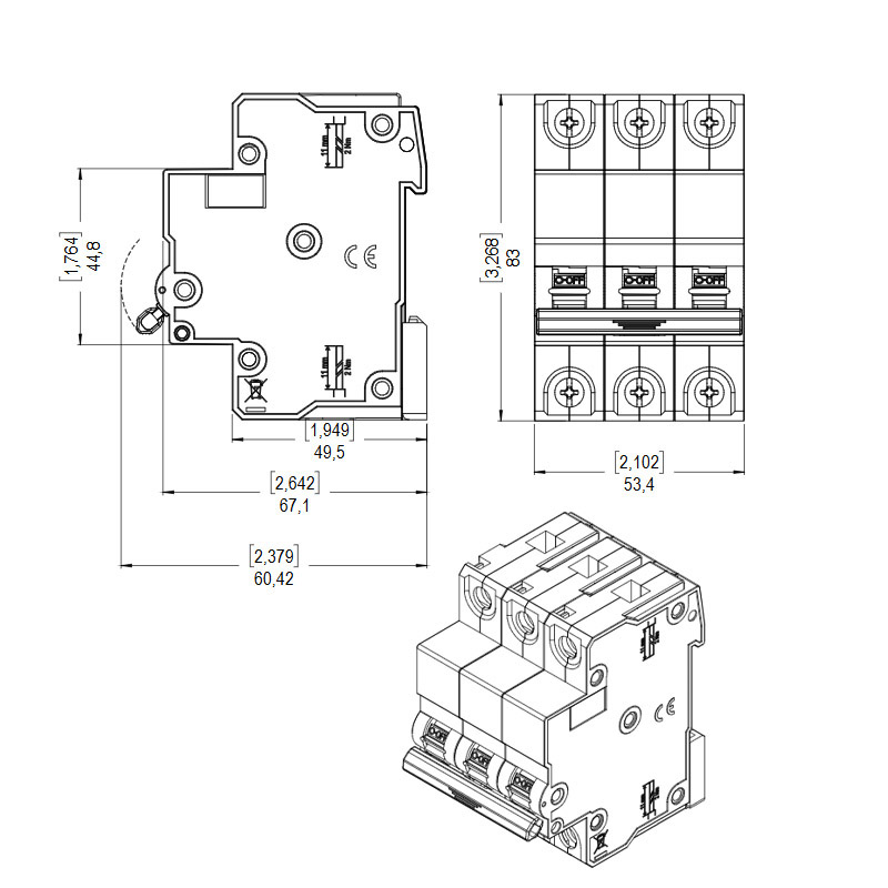 Disjuntor din curva c 3x 16a 3ka mdwp-Weg