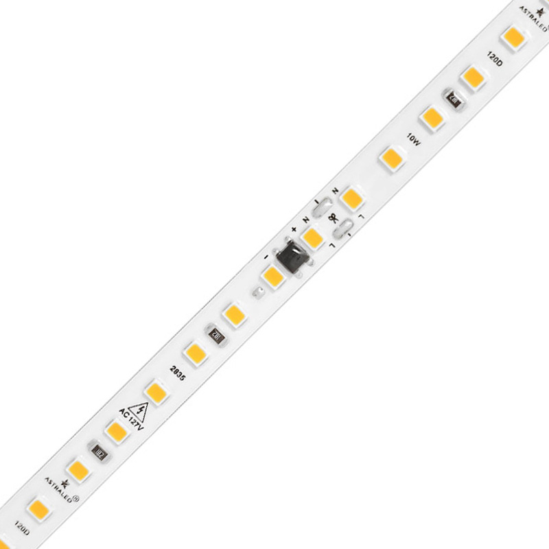 Com potência de 10W por metro e 120 LEDs/m, a Fita Nevis entrega excelente fluxo luminoso e baixo consumo de energia. Compatível com tensão 127V, dispensa o uso de driver, garantindo instalação rápida e prática. Possui grau de proteção IP44, resistente a respingos, ideal para áreas internas e semiabrigadas. Produzida com materiais de alta durabilidade, oferece longa vida útil e o padrão de qualidade Astraled.