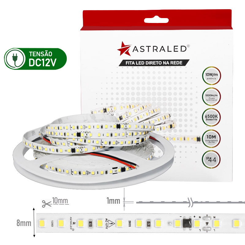 – Contém na embalagem: 1 Fita LED Nevis 10m 127V 6500K Astraled, plugue conector e manual de instalação