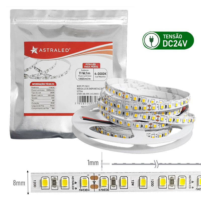 A Fita LED 2835 Astraled foi pensada para criar ambientes equilibrados, modernos e visualmente confortáveis. Sua luz neutra de 4000K transmite sensação de clareza e organização, ideal para quem busca funcionalidade sem abrir mão de um acabamento elegante. É a escolha certa para valorizar espaços com iluminação uniforme e agradável aos olhos.