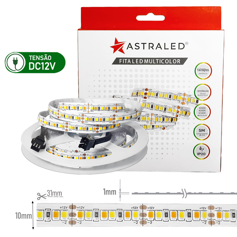 Com 14W de potência distribuídos em 5 metros e alimentação em 12V, oferece bom desempenho luminoso com eficiência energética e baixo aquecimento. A possibilidade de alternar entre os tons torna essa fita ideal tanto para iluminação decorativa quanto funcional, valorizando móveis, sancas e detalhes arquitetônicos com criatividade.