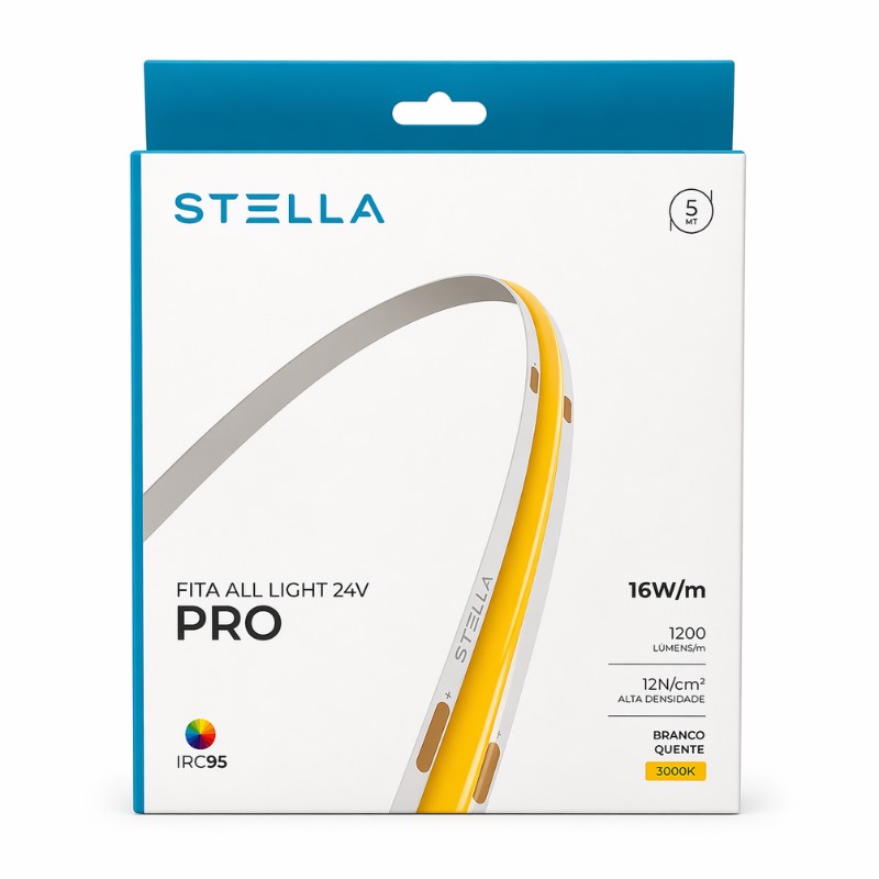 A Fita LED All Light Pro 5m 24V 16W 3000K IP20 Stella é uma excelente escolha para quem busca iluminação linear com acabamento refinado, conforto visual e desempenho consistente em projetos de interiores. Com luz quente de 3000K, ela ajuda a criar uma atmosfera mais acolhedora e agradável, sendo ideal para sancas, nichos, painéis, cabeceiras, móveis planejados, prateleiras e detalhes decorativos em salas, quartos, corredores e ambientes comerciais internos. A alimentação em 24V favorece aplicações com melhor estabilidade em projetos lineares, enquanto o formato versátil facilita o uso em composições modernas e funcionais. É uma solução prática para valorizar o ambiente com iluminação contínua, elegante e bem distribuída no dia a dia.