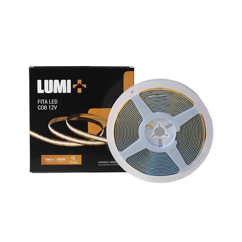 A Fita LED COB Profissional Lumi+ foi criada para quem busca uma iluminação contínua, sofisticada e visualmente impecável. Sua luz quente de 3000K envolve o ambiente com uma sensação acolhedora e elegante, criando cenários confortáveis que valorizam móveis, paredes e detalhes arquitetônicos sem pontos aparentes de luz.
