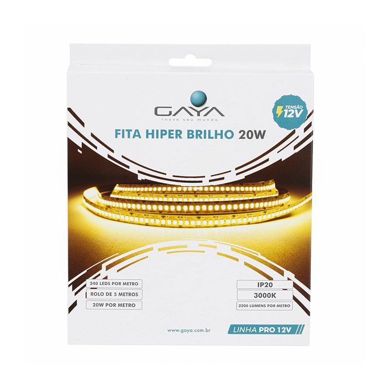 A Fita LED Hiper Brilho Gaya foi desenvolvida para quem busca iluminação intensa com um toque acolhedor e sofisticado. Sua luz quente de 2700K cria uma sensação envolvente de conforto e elegância, ideal para transformar o ambiente em um espaço convidativo, valorizando móveis, sancas e detalhes arquitetônicos com destaque e profundidade.