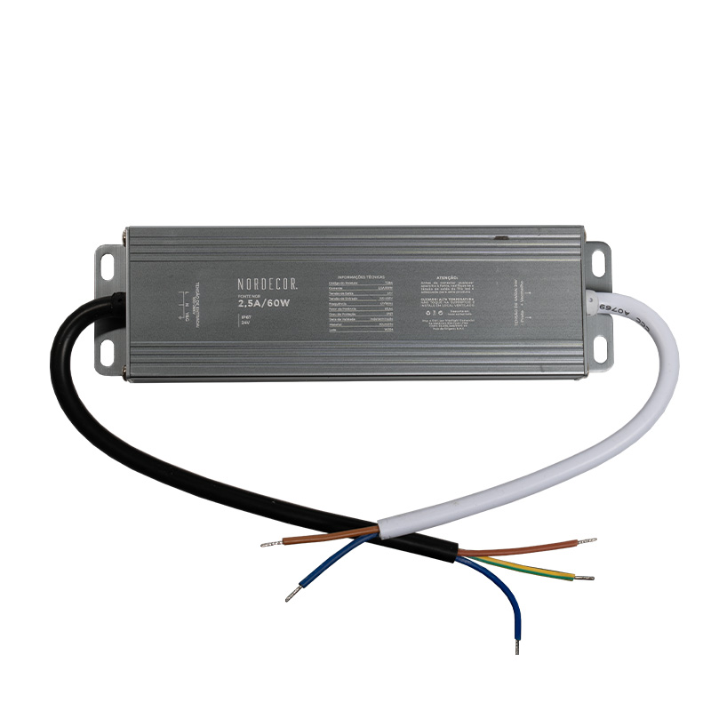 A Fonte Blindada Nordecor 200W – 24V foi projetada para oferecer eficiência, segurança e confiabilidade em projetos de iluminação LED profissional. Com corrente de 2.5A e saída estabilizada de 24V, é ideal para alimentar fitas e luminárias LED, garantindo energia constante e desempenho superior em instalações residenciais, comerciais e arquiteturais.