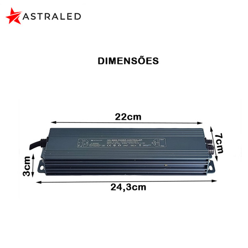A Fonte para Fita LED Blindada Astraled 300W foi desenvolvida para projetos que exigem alta potência com máxima estabilidade e segurança elétrica. Seu modelo blindado oferece estrutura reforçada e excelente dissipação de calor, ideal para instalações técnicas que demandam desempenho contínuo e confiável.