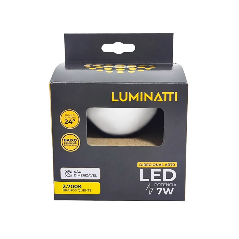 A Lâmpada LED AR70 Refletora Luminatti foi pensada para criar ambientes acolhedores e sofisticados, onde a luz faz toda a diferença. Sua tonalidade quente de 2700K proporciona uma sensação de conforto visual e bem-estar, ideal para valorizar detalhes e criar cenas envolventes. O facho de 24° garante iluminação precisa, perfeita para destacar objetos, texturas e elementos arquitetônicos com elegância.