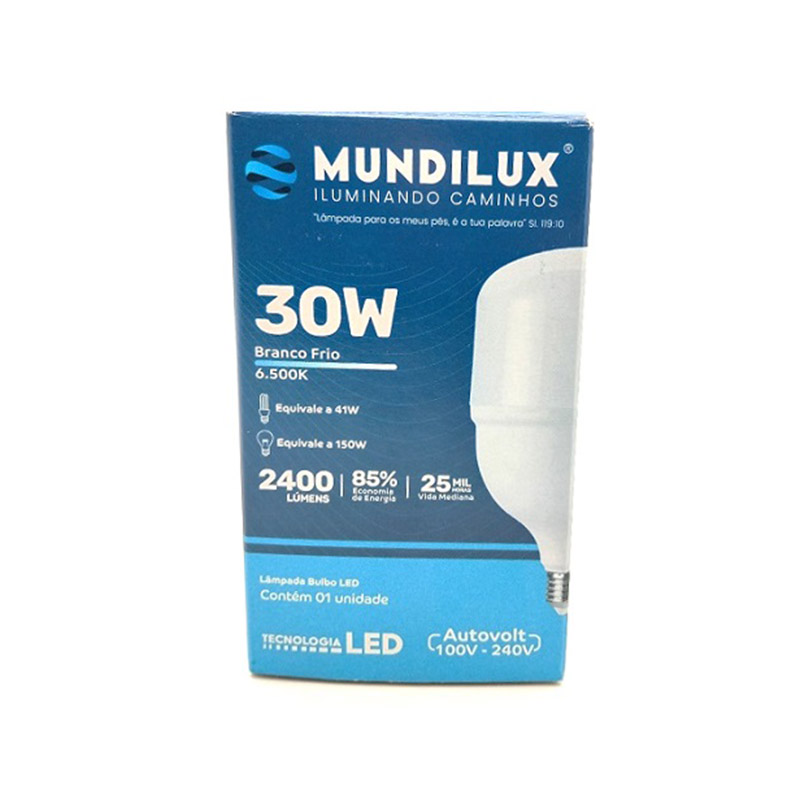 – Contém na embalagem: 1 Lâmpada LED Bulbo 30W 6500K 2400lm E27 Mundilux