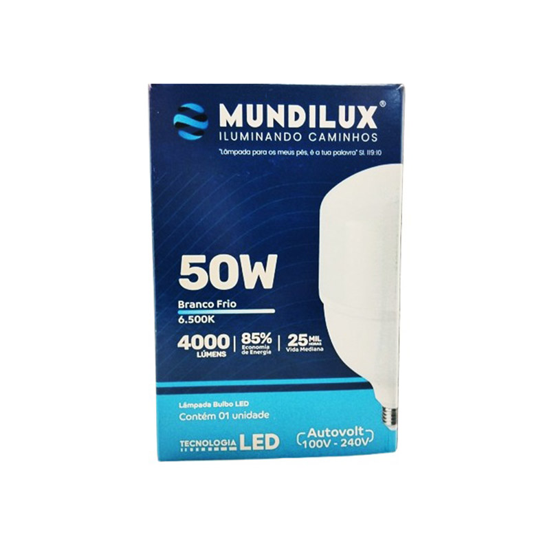 A Lâmpada LED Bulbo 50W da Mundilux é indicada para quem precisa de iluminação intensa, eficiente e econômica em ambientes amplos. Com luz branca fria de 6500K, ela proporciona alta claridade e excelente visibilidade, sendo ideal para locais que exigem iluminação forte e funcional. Seu formato bulbo garante ampla distribuição da luz, substituindo lâmpadas de alta potência com muito mais eficiência energética.
