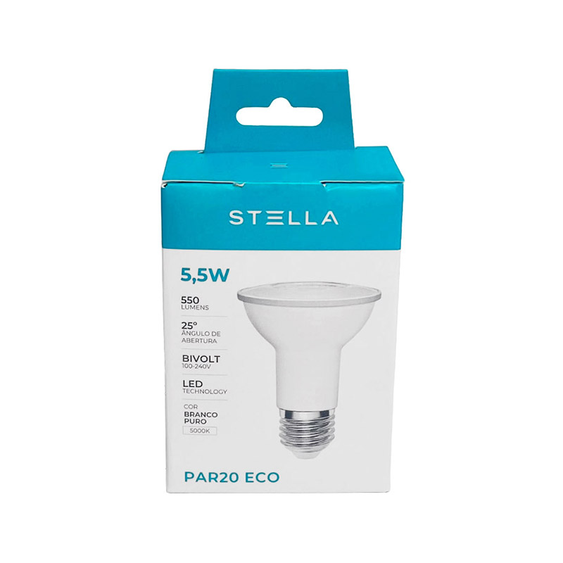 – Contém na embalagem: 1 lâmpada LED PAR20 Eco 5,5W Stella