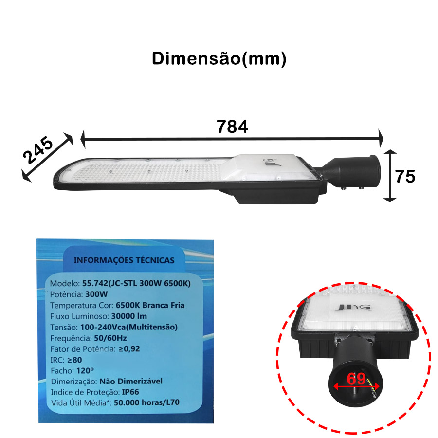 – Contém na embalagem: 1 luminária pública LED 300W