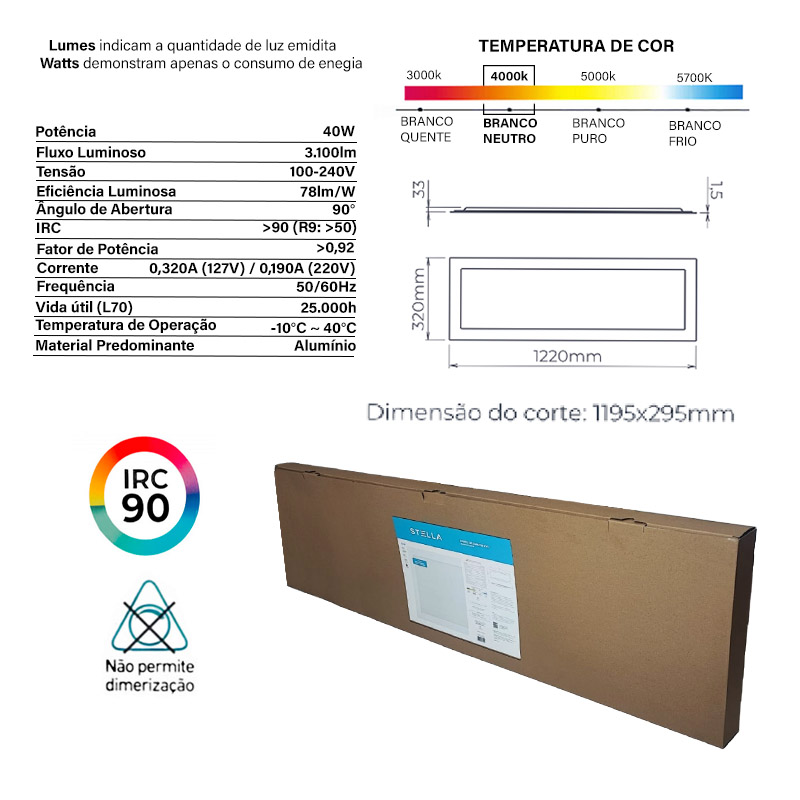 – Temp. de Cor: 4.000K