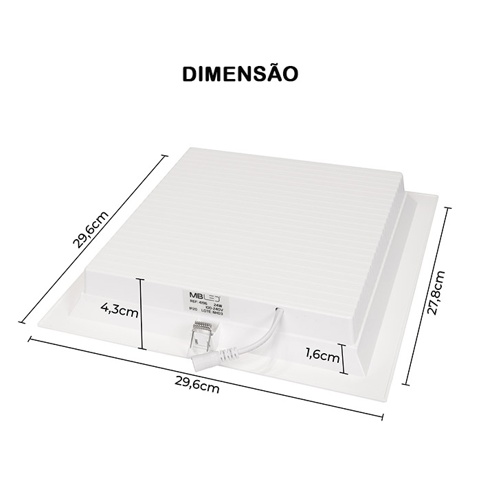 – Dimensões: 295 x 295 x 43,5mm / Nicho: 280 x 280mm