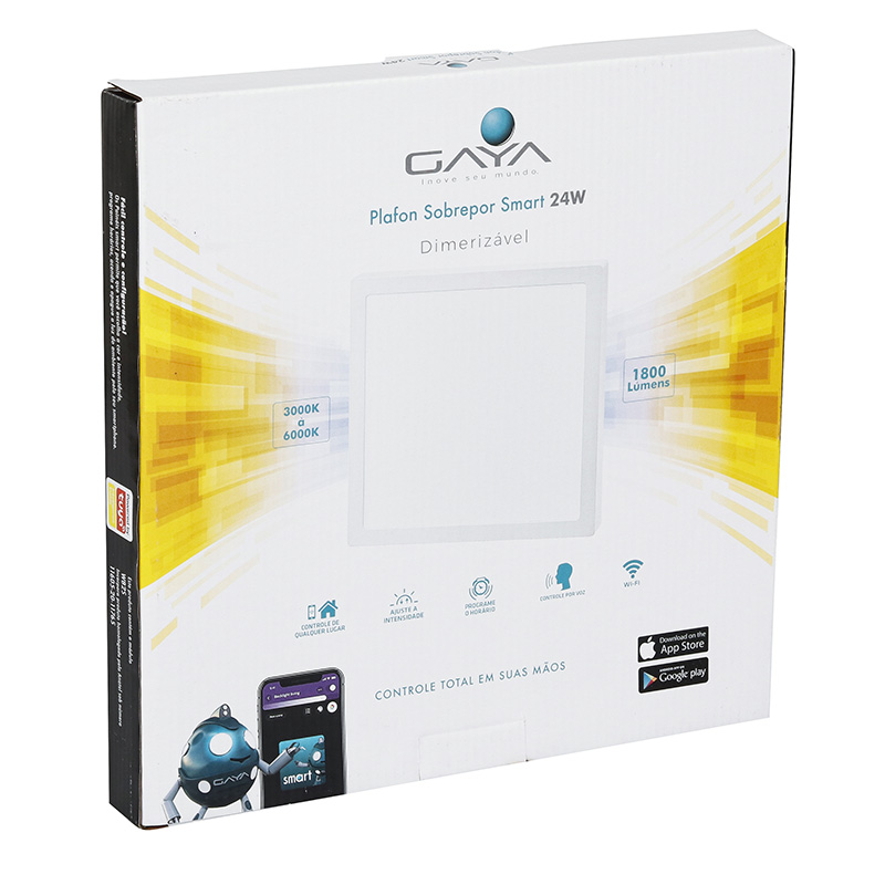 – Contém na embalagem: 1 Plafon Smart Quadrado 24W 6000K 1800lm 28cm Gaya