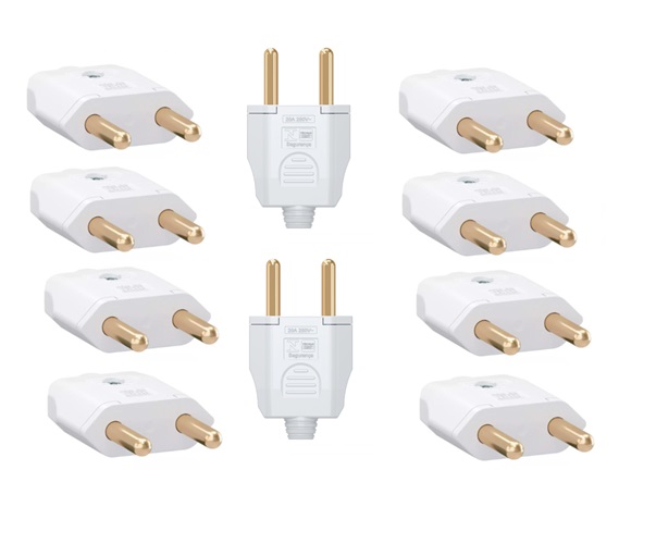 Kit Plugue macho slim 2p 10a 180º branco-Weg – 10 Peças