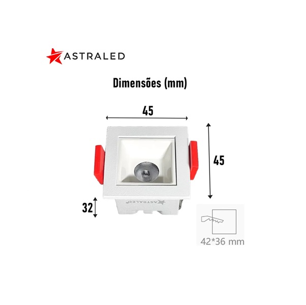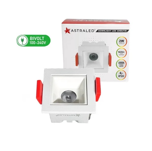 – Contém na embalagem: 1 Spot Embutir Downlight Quadrado 2W 3000K 160lm 38° Branco/Branco Astraled