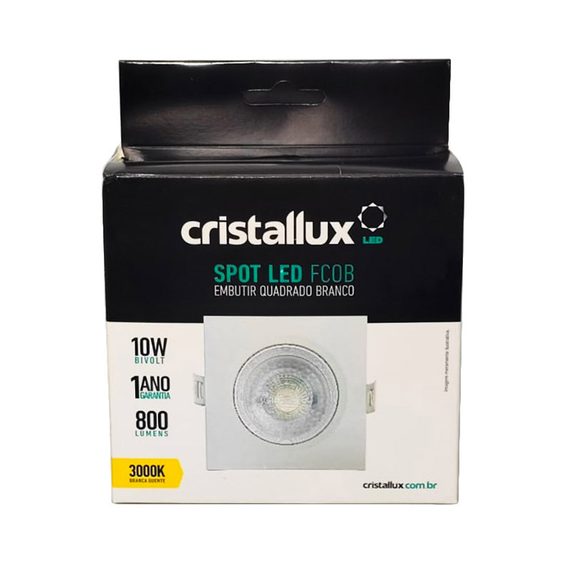 – Contém na embalagem: 1 Spot Embutir Quadrado 10W 3000K 800lm Branco Cristallux