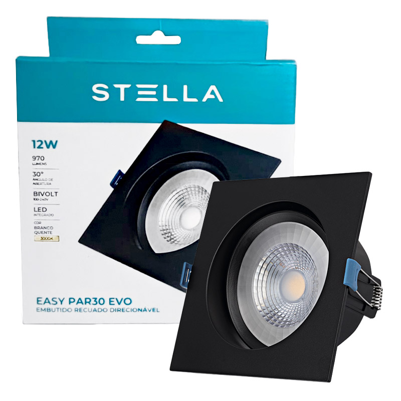 – Contém na embalagem: 1 Spot Embutir Easy Evo 12W 3000K 970lm Preto Stella