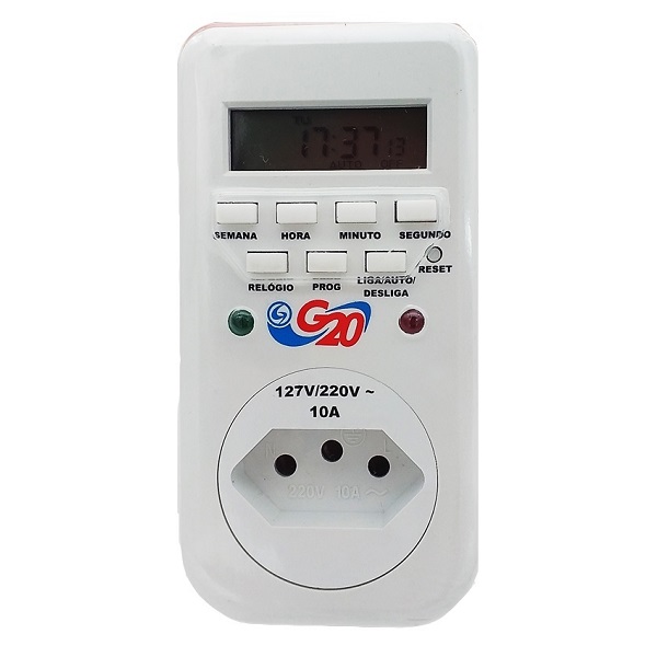 O Temporizador Digital Autovolt G20 é a solução perfeita para automatizar o ligar e desligar de aparelhos eletrônicos, luzes e sistemas. Com 20 programações diárias ou semanais, ele oferece total flexibilidade para você controlar o consumo de energia e otimizar a rotina da sua casa ou escritório. Este temporizador G20 é autovolt, ou seja, compatível com voltagens de 110V a 220V, garantindo versatilidade na instalação. Ideal para a sua segurança, simulando presença, ou para a sua economia, evitando desperdícios de energia. Simplifique seu dia a dia com a praticidade e a inteligência que o Temporizador Digital G20 oferece!